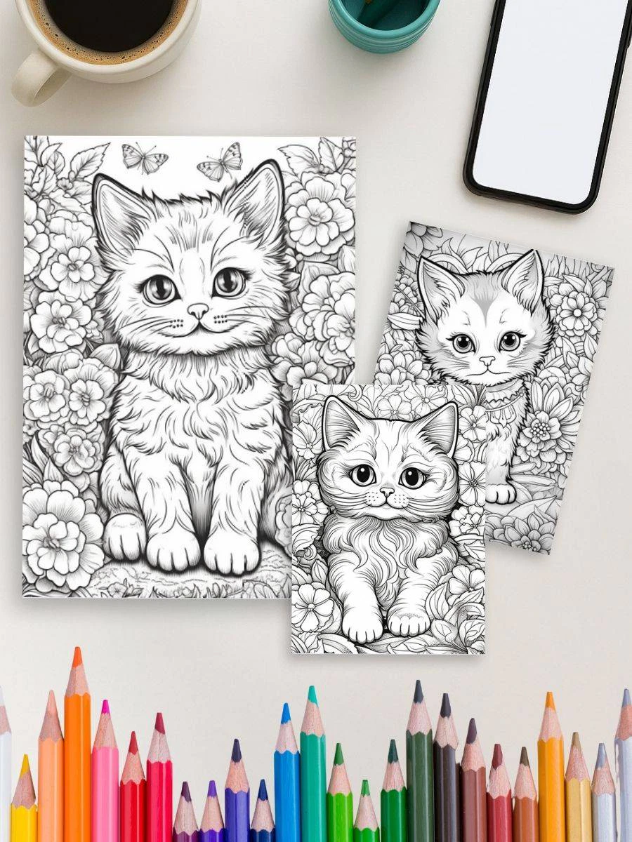 "Mini Meows – 70 Cute Small Cat Coloring Pages" - Product Details