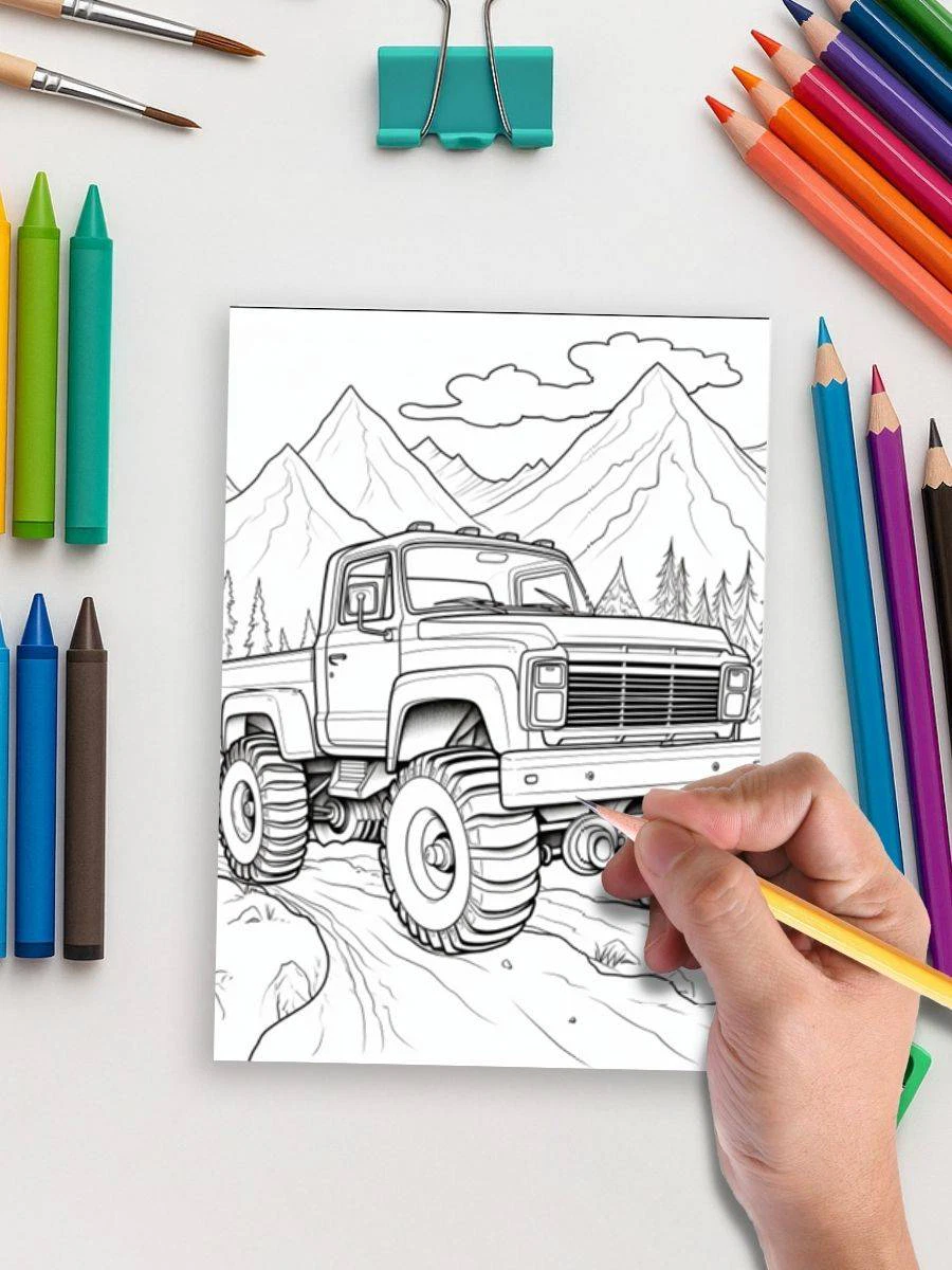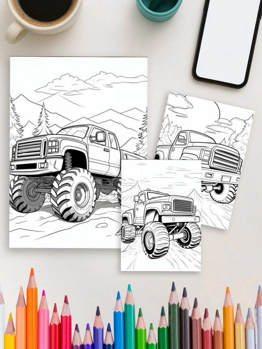 "Truck Power – 120 Monster Truck Coloring Pages" - Product Details