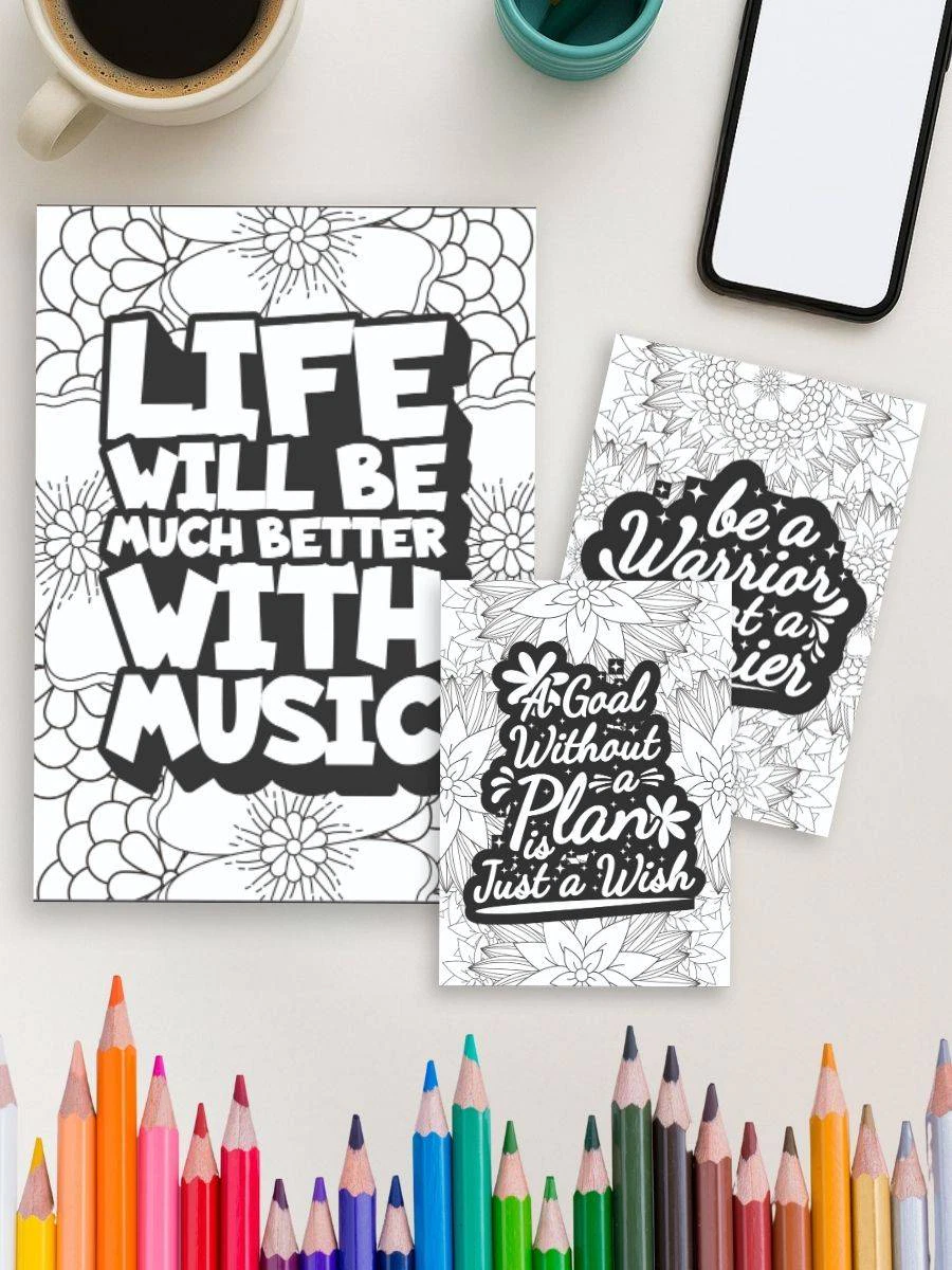70 pages of motivational quotes in beautiful, artistic fonts with creative layouts.
